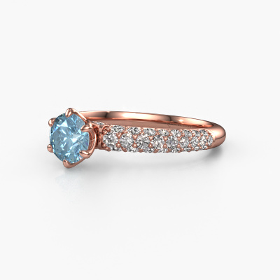 The ring shown above is called the Meryl. We call this type of ring a pavé solitaire ring because it has one centre gemstone and a band that is also pave set with gemstones. This engagement ring is made in 14 Carat rose gold set with a 5.7 mm round blue lab grown diamond, and pave set diamonds at the sides. Each piece of jewellery is made just for you, with attention to detail and design.This exclusive rose gold pavé solitaire engagement ring has an exquisite round blue lab grown diamond centre stone. To further accentuate the centre stone, the band is set full with more diamonds. Its open prong setting allows light to strike the blue lab grown diamond from various angles and this adds sparkle to your blue lab grown diamond ring. The photo shown above depicts the goldsmith's carefully handcrafted details of the ring. The high positioning of the centre stone is truly eye-catching. The perfect engagement ring for the crown jewel of your life!After receiving your order, our goldsmiths will passionately start the creative process of making your engagement ring in our own studio. Because we don't have a big stockpile, these costs will not be passed on to you. Our pricing is proof of that! We offer top quality jewels at lowest price, guaranteed.Have you found a specific engagement ring somewhere which you would like to give to your loved one? Please feel free to express your wishes to our jewel designers because we would be honoured to turn your design into a exclusive engagement ring. You can follow the development of your ring design because we use 3D drawings. This gives you a realistic preview of how your design will look. You can also preorder a dummy. A dummy is a plastic ring, which can be shaped according your ring design. You can try it on and check if its width and size are suitable for you. We will gladly send you a non-binding offer, based on a fair price/ quality ratio. It will amaze you, considering the quality of the ring and gemstones.To make it easier for you, we offer a 30 day return policy. Check our terms and conditions.