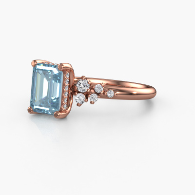 The ring shown above is called the Emma EME. We call this type of ring a pavé solitaire ring because it has one centre gemstone and a band that is also pave set with gemstones. This engagement ring is made in 14 Carat rose gold set with a 8x6 mm emerald cut blue lab grown diamond, and pave set lab-grown diamonds at the sides. Each piece of jewellery is made with passion and love by one of our master goldsmiths.This fantasy rose gold pavé solitaire engagement ring has an exquisite emerald cut blue lab grown diamond centre stone. To further accentuate the centre stone, the band is set full with more lab-grown diamonds. Its open prong setting allows light to strike the blue lab grown diamond from various angles and this adds sparkle to your blue lab grown diamond ring. The photo shown above depicts the goldsmith's carefully handcrafted details of the ring. The high positioning of the centre stone is truly eye-catching. The perfect engagement ring for the crown jewel of your life!After receiving your order, our goldsmiths will passionately start the creative process of making your engagement ring in our own studio. Because we don't have a big stockpile, these costs will not be passed on to you. Our pricing is proof of that! We offer top quality jewels at lowest price, guaranteed.Our team adds new designs to our online collection daily. Our designers and goldsmiths work together in creating the best design. We strive to offer a diverse collection of jewels. Perhaps you have a specific jewel design in mind. One you came across somewhere. Please contact us for a free consultation. We will make you an offer, based on a fair price/ quality ratio, that will baffle you.To make it easier for you, we offer a 30 day return policy. Check our terms and conditions.