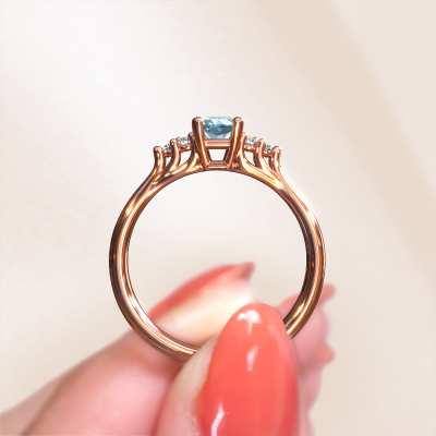 In your eyes, no one else compares to her. She is one in a million, unlike anyone else and pure? These qualities are emphasized perfectly by our fantasy rose gold solitaire blue lab grown diamond ring. This blue lab grown diamond is carefully selected by our keen artisan goldsmiths. It equals the unique qualities of the love of your life. There is no better way to memorialize your proposal than this symbol of true love. The ring shown above is called the Monika RAD, we call this a solitaire ring because it contains a single gemstone. The engagement ring is made in 14 Carat rose gold and has a radiant blue lab grown diamond of 6x4 mm. Each piece of jewellery is made just for you, with attention to detail and design.By using our modern techniques, we can design and customize the finest quality jewels with the utmost care for you. Our engagement rings are always priced 30 percent lower than other jewellers. We make engagement rings to order so we don't have to maintain a large stock. If you have a certain budget, we are more than happy to advice you accordingly.Our team adds new designs to our online collection daily. Our designers and goldsmiths work together in creating the best design. We strive to offer a diverse collection of jewels. Perhaps you have a specific jewel design in mind. One you came across somewhere. Please contact us for a free consultation. We will make you an offer, based on a fair price/ quality ratio, that will baffle you.To make it easier for you, we offer a 30 day return policy. Check our terms and conditions.