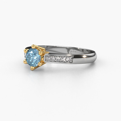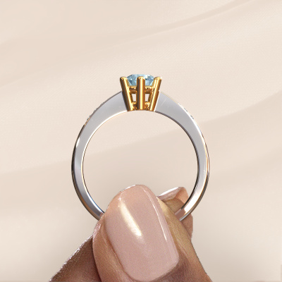 The ring shown above is called the Luna 2. We call this type of ring a pavé solitaire ring because it has one centre gemstone and a band that is also pave set with gemstones. This engagement ring is made in 14 Carat white gold set with a 5 mm round blue lab grown diamond, and pave set diamonds at the sides. Each piece of jewellery is unique in every way! Simply customize to your liking,This classic white gold pavé solitaire engagement ring has an exquisite round blue lab grown diamond centre stone. To further accentuate the centre stone, the band is set full with more diamonds. Its open prong setting allows light to strike the blue lab grown diamond from various angles and this adds sparkle to your blue lab grown diamond ring. The photo shown above depicts the goldsmith's carefully handcrafted details of the ring. The high positioning of the centre stone is truly eye-catching. The perfect engagement ring for the crown jewel of your life!Because we design and deliver our own rings, we can offer you a engagement ring at a price you won't find anywhere else. A ring is made to order, which helps prevent excess supplies, so we can make you a great price offer. We understand it feels risky, buying your engagement ring online, but we will gladly assist in the designing process, taking your budget into consideration.Our team adds new designs to our online collection daily. Our designers and goldsmiths work together in creating the best design. We strive to offer a diverse collection of jewels. Perhaps you have a specific jewel design in mind. One you came across somewhere. Please contact us for a free consultation. We will make you an offer, based on a fair price/ quality ratio, that will baffle you.To make it easier for you, we offer a 30 day return policy. Check our terms and conditions.