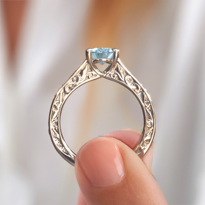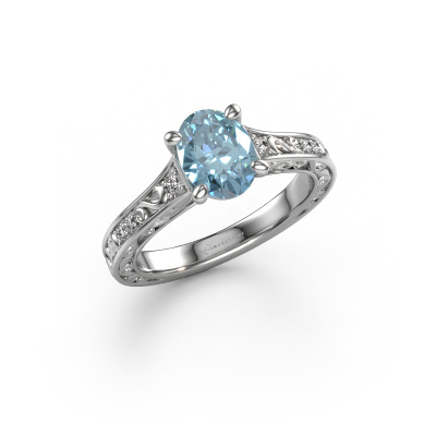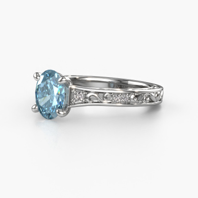 The ring shown above is called the Mallory ovl. We call this type of ring a pavé solitaire ring because it has one centre gemstone and a band that is also pave set with gemstones. This engagement ring is made in 14 Carat white gold set with a 8x6 mm oval blue lab grown diamond, and pave set lab-grown diamonds at the sides. Each piece of jewellery is made with passion and love by one of our master goldsmiths.This traditional white gold pavé solitaire engagement ring has an exquisite oval blue lab grown diamond centre stone. To further accentuate the centre stone, the band is set full with more lab-grown diamonds. Its open prong setting allows light to strike the blue lab grown diamond from various angles and this adds sparkle to your blue lab grown diamond ring. The photo shown above depicts the goldsmith's carefully handcrafted details of the ring. The high positioning of the centre stone is truly eye-catching. The perfect engagement ring for the crown jewel of your life!Are you on a budget? Please feel free to contact us, so we can go discuss your options. We offer our engagement rings at guaranteed best price, because we make them to order. You won't find such a price anywhere else!Our team adds new designs to our online collection daily. Our designers and goldsmiths work together in creating the best design. We strive to offer a diverse collection of jewels. Perhaps you have a specific jewel design in mind. One you came across somewhere. Please contact us for a free consultation. We will make you an offer, based on a fair price/ quality ratio, that will baffle you.To make it easier for you, we offer a 30 day return policy. Check our terms and conditions.