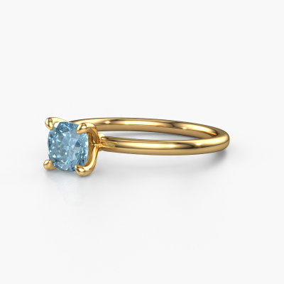 The ring shown above is called the Crystal CUS 1, we call this a solitaire ring because it contains a single gemstone. The engagement ring is made in 14 Carat gold and has a cushion blue lab grown diamond of 5.5 mm. The cool thing about our configurator is that you can compile your own piece of jewellery, into a completely personalized one. This solitaire ring is crafted in the precious metals gold with gold, but of course you are free to pick your own colours. Each piece of jewellery is made with passion and love by one of our master goldsmiths.The solitaire ring is a special type of engagement ring. Its open prong setting allows light to strike the gemstone from various angles. This contemporary engagement ring is a stunning eye-catcher because of the high positioning of the gemstone. In order for you to commemorate your proposal with a unique ring, we carefully adorn this solitaire ring by hand. The love of your life deserves nothing but the best. Because we design and deliver our own rings, we can offer you a engagement ring at a price you won't find anywhere else. A ring is made to order, which helps prevent excess supplies, so we can make you a great price offer. We understand it feels risky, buying your engagement ring online, but we will gladly assist in the designing process, taking your budget into consideration.Our team adds new designs to our online collection daily. Our designers and goldsmiths work together in creating the best design. We strive to offer a diverse collection of jewels. Perhaps you have a specific jewel design in mind. One you came across somewhere. Please contact us for a free consultation. We will make you an offer, based on a fair price/ quality ratio, that will baffle you.To make it easier for you, we offer a 30 day return policy. Check our terms and conditions.