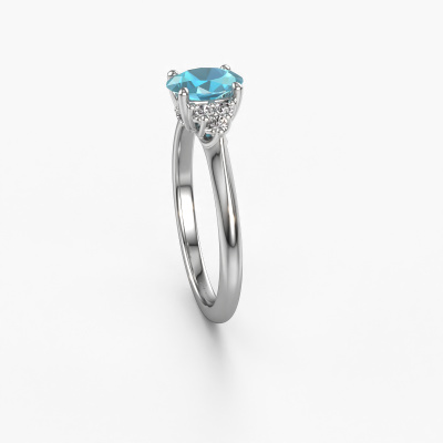 This platinum ring is called Felipa OVL and is set with blue topaz. How would you describe the style of the love of your life? Does she have a unique sense of style? This stunning graceful platinum engagement ring can be custom-made to your own or her liking. Our blue topaz gemstones have been carefully selected because we believe your traditional engagement ring must be adorned with nothing but the most beautiful gemstone. Don't you agree? This jewel is made just for you by our master goldsmiths in our own studio.By using our modern techniques, we can design and customize the finest quality jewels with the utmost care for you. Our engagement rings are always priced 30 percent lower than other jewellers. We make engagement rings to order so we don't have to maintain a large stock. If you have a certain budget, we are more than happy to advice you accordingly.Have you found a specific engagement ring somewhere which you would like to give to your loved one? Please feel free to express your wishes to our jewel designers because we would be honoured to turn your design into a traditional engagement ring. You can follow the development of your ring design because we use 3D drawings. This gives you a realistic preview of how your design will look. You can also preorder a dummy. A dummy is a plastic ring, which can be shaped according your ring design. You can try it on and check if its width and size are suitable for you. We will gladly send you a non-binding offer, based on a fair price/ quality ratio. It will amaze you, considering the quality of the ring and gemstones.To make it easier for you, we offer a 30 day return policy. Check our terms and conditions.