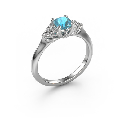This platinum ring is called Felipa CUS and is set with blue topaz. How would you describe the style of the love of your life? Does she have a unique sense of style? This stunning graceful platinum engagement ring can be custom-made to your own or her liking. Our blue topaz gemstones have been carefully selected because we believe your vintage engagement ring must be adorned with nothing but the most beautiful gemstone. Don't you agree? This jewel is made just for you by our master goldsmiths in our own studio.By using our modern techniques, we can design and customize the finest quality jewels with the utmost care for you. Our engagement rings are always priced 30 percent lower than other jewellers. We make engagement rings to order so we don't have to maintain a large stock. If you have a certain budget, we are more than happy to advice you accordingly.Have you found a specific engagement ring somewhere which you would like to give to your loved one? Please feel free to express your wishes to our jewel designers because we would be honoured to turn your design into a vintage engagement ring. You can follow the development of your ring design because we use 3D drawings. This gives you a realistic preview of how your design will look. You can also preorder a dummy. A dummy is a plastic ring, which can be shaped according your ring design. You can try it on and check if its width and size are suitable for you. We will gladly send you a non-binding offer, based on a fair price/ quality ratio. It will amaze you, considering the quality of the ring and gemstones.To make it easier for you, we offer a 30 day return policy. Check our terms and conditions.