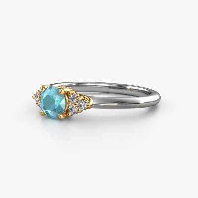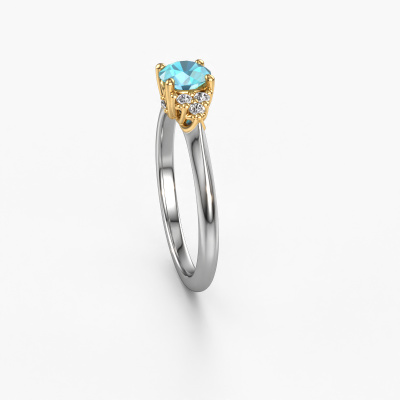 This 14 Carat white gold ring is called Felipa RND and is set with 5 mm blue topaz. What is it that makes your relationship unique? What is it about her that makes you want to bend down on one knee? The unique bond between the two of you is emphasized by an equally unique ring. A one of a kind ajour 3-stone engagement ring made especially for her. That is why this fantasy ring fits her like a glove. Each specific detail of this ajour white gold blue topaz set engagement ring is hand-picked, crafted and polished by our expert goldsmith. The result is an exquisite ring, unique and perfectly crafted to perfection. That is what our expert Goldsmiths strive for. This jewel is made just for you by our master goldsmiths in our own studio.After receiving your order, our goldsmiths will passionately start the creative process of making your engagement ring in our own studio. Because we don't have a big stockpile, these costs will not be passed on to you. Our pricing is proof of that! We offer top quality jewels at lowest price, guaranteed.Have you found a specific engagement ring somewhere which you would like to give to your loved one? Please feel free to express your wishes to our jewel designers because we would be honoured to turn your design into a fantasy engagement ring. You can follow the development of your ring design because we use 3D drawings. This gives you a realistic preview of how your design will look. You can also preorder a dummy. A dummy is a plastic ring, which can be shaped according your ring design. You can try it on and check if its width and size are suitable for you. We will gladly send you a non-binding offer, based on a fair price/ quality ratio. It will amaze you, considering the quality of the ring and gemstones.To make it easier for you, we offer a 30 day return policy. Check our terms and conditions.