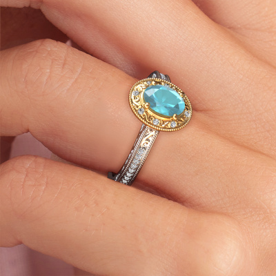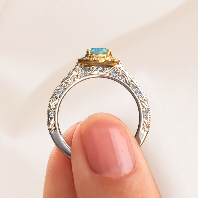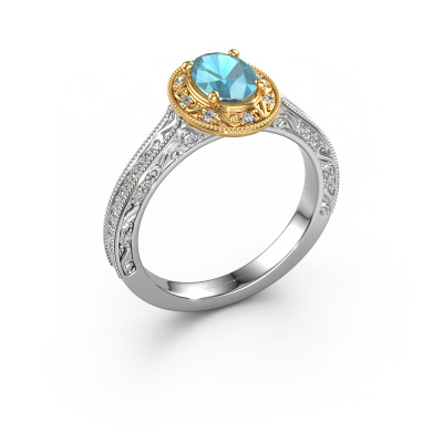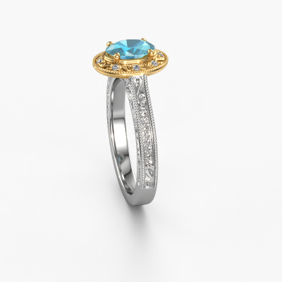 This 14 Carat white gold ring is called Alice OVL and is set with 7x5 mm blue topaz. What is it that makes your relationship unique? What is it about her that makes you want to bend down on one knee? The unique bond between the two of you is emphasized by an equally unique ring. A one of a kind filigree halo engagement ring made especially for her. That is why this vintage ring fits her like a glove. Each specific detail of this filigree white gold blue topaz set engagement ring is hand-picked, crafted and polished by our expert goldsmith. The result is an exquisite ring, unique and perfectly crafted to perfection. That is what our expert Goldsmiths strive for. This jewel is made with passion and love by one of our master goldsmiths.By using our modern techniques, we can design and customize the finest quality jewels with the utmost care for you. Our engagement rings are always priced 30 percent lower than other jewellers. We make engagement rings to order so we don't have to maintain a large stock. If you have a certain budget, we are more than happy to advice you accordingly.Our team adds new designs to our online collection daily. Our designers and goldsmiths work together in creating the best design. We strive to offer a diverse collection of jewels. Perhaps you have a specific jewel design in mind. One you came across somewhere. Please contact us for a free consultation. We will make you an offer, based on a fair price/ quality ratio, that will baffle you.To make it easier for you, we offer a 30 day return policy. Check our terms and conditions.