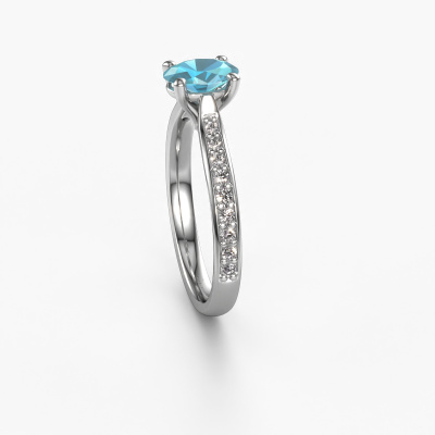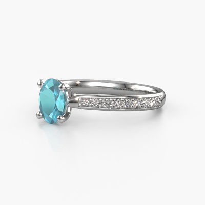 The ring shown above is called the Mignon ovl 2, we call this a solitaire ring because it contains a single gemstone. The engagement ring is made in platinum and has a oval blue topaz of 7x5 mm. The cool thing about our configurator is that you can compile your own piece of jewellery, into a completely personalized one. This solitaire ring is crafted in the precious metals platinum with platinum, but of course you are free to pick your own colours. Each piece of jewellery is made with passion and love by one of our master goldsmiths.The solitaire ring is a special type of engagement ring. Its open prong setting allows light to strike the gemstone from various angles. This chic engagement ring is a stunning eye-catcher because of the high positioning of the gemstone. In order for you to commemorate your proposal with a unique ring, we carefully adorn this solitaire ring by hand. The love of your life deserves nothing but the best. After receiving your order, our goldsmiths will passionately start the creative process of making your engagement ring in our own studio. Because we don't have a big stockpile, these costs will not be passed on to you. Our pricing is proof of that! We offer top quality jewels at lowest price, guaranteed.Our team adds new designs to our online collection daily. Our designers and goldsmiths work together in creating the best design. We strive to offer a diverse collection of jewels. Perhaps you have a specific jewel design in mind. One you came across somewhere. Please contact us for a free consultation. We will make you an offer, based on a fair price/ quality ratio, that will baffle you.To make it easier for you, we offer a 30 day return policy. Check our terms and conditions.