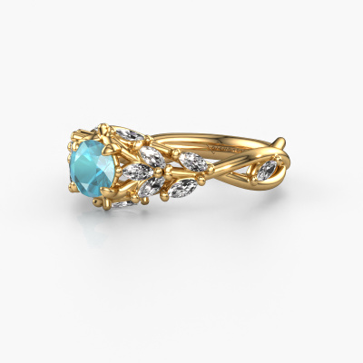 The ring shown above is called the Samantha RND. We call this type of ring a pavé solitaire ring because it has one centre gemstone and a band that is also pave set with gemstones. This engagement ring is made in 14 Carat gold set with a 5 mm round blue topaz, and pave set diamonds at the sides. Each piece of jewellery is made with passion and love by one of our master goldsmiths.This contemporary gold pavé solitaire engagement ring has an exquisite round blue topaz centre stone. To further accentuate the centre stone, the band is set full with more diamonds. Its open prong setting allows light to strike the blue topaz from various angles and this adds sparkle to your blue topaz ring. The photo shown above depicts the goldsmith's carefully handcrafted details of the ring. The high positioning of the centre stone is truly eye-catching. The perfect engagement ring for the crown jewel of your life!By using a combination of the latest modern techniques, combined with ancient crafting, we can make all our engagement rings in our own studio. Each jewel is made to order. This is advantageous because we can offer you a price you won't find anywhere else.Our designers and goldsmiths work together each day, creating new jewels. Perhaps you have found a nice contemporary engagement ring somewhere, which can be used to customize your unique ring. Please feel free to contact us. We will make you an offer, based on a fair price/ quality ratio, which will amaze you.To make it easier for you, we offer a 30 day return policy. Check our terms and conditions.