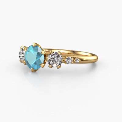 This 14 Carat gold ring is called Aniek RND and is set with blue topaz. How would you describe the style of the love of your life? Does she have a unique sense of style? This stunning graceful gold engagement ring can be custom-made to your own or her liking. Our blue topaz gemstones have been carefully selected because we believe your fantasy engagement ring must be adorned with nothing but the most beautiful gemstone. Don't you agree? This jewel is made just for you by our master goldsmiths in our own studio.Are you on a budget? Please feel free to contact us, so we can go discuss your options. We offer our engagement rings at guaranteed best price, because we make them to order. You won't find such a price anywhere else!Have you found a specific engagement ring somewhere which you would like to give to your loved one? Please feel free to express your wishes to our jewel designers because we would be honoured to turn your design into a fantasy engagement ring. You can follow the development of your ring design because we use 3D drawings. This gives you a realistic preview of how your design will look. You can also preorder a dummy. A dummy is a plastic ring, which can be shaped according your ring design. You can try it on and check if its width and size are suitable for you. We will gladly send you a non-binding offer, based on a fair price/ quality ratio. It will amaze you, considering the quality of the ring and gemstones.To make it easier for you, we offer a 30 day return policy. Check our terms and conditions.