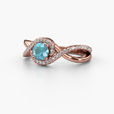 The ring shown above is called the Melody. We call this type of ring a pavé solitaire ring because it has one centre gemstone and a band that is also pave set with gemstones. This engagement ring is made in 14 Carat rose gold set with a 5 mm round blue topaz, and pave set diamonds at the sides. Each piece of jewellery is unique in every way! Simply customize to your likingThis classic rose gold pavé solitaire engagement ring has an exquisite round blue topaz centre stone. To further accentuate the centre stone, the band is set full with more diamonds. Its open prong setting allows light to strike the blue topaz from various angles and this adds sparkle to your blue topaz ring. The photo shown above depicts the goldsmith's carefully handcrafted details of the ring. The high positioning of the centre stone is truly eye-catching. The perfect engagement ring for the crown jewel of your life!Because we design and deliver our own rings, we can offer you a engagement ring at a price you won't find anywhere else. A ring is made to order, which helps prevent excess supplies, so we can make you a great price offer. We understand it feels risky, buying your engagement ring online, but we will gladly assist in the designing process, taking your budget into consideration.Do you have a specific ring in mind? One you came across somewhere. Please feel free to tell us your wishes and we will turn your design into a unique engagement ring. You can follow the development of your ring design because we use 3D drawings. This gives you a realistic preview of your design. We will gladly send you a non-binding offer, based on a fair price/ quality ratio. It will amaze you.To make it easier for you, we offer a 30 day return policy. Check our terms and conditions.