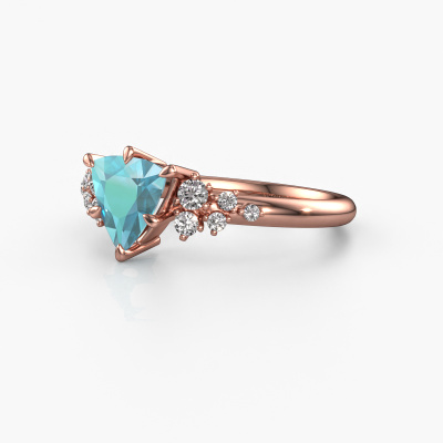 This 14 Carat rose gold ring is called Royce TRI and is set with blue topaz. How would you describe the style of the love of your life? Does she have a unique sense of style? This stunning pretty rose gold engagement ring can be custom-made to your