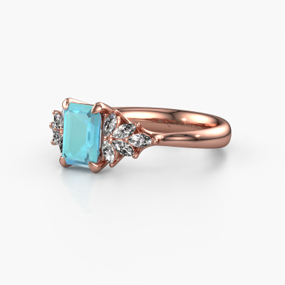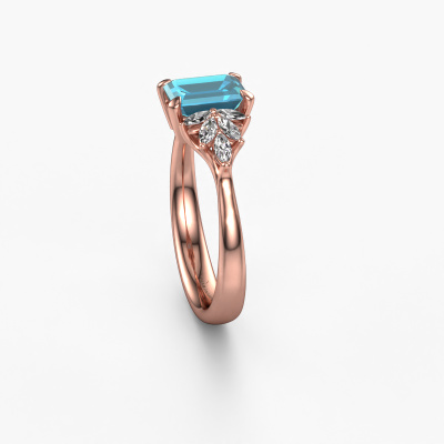 This 14 Carat rose gold ring is called Fiona EME and is set with 7x5 mm blue topaz. What is it that makes your relationship unique? What is it about her that makes you want to bend down on one knee? The unique bond between the two of you is emphasized by an equally unique ring. A one of a kind special pavé solitaire engagement ring made especially for her. That is why this vintage ring fits her like a glove. Each specific detail of this special rose gold blue topaz set engagement ring is hand-picked, crafted and polished by our expert goldsmith. The result is an exquisite ring, unique and perfectly crafted to perfection. That is what our expert Goldsmiths strive for. This jewel is created to add sparkle to your finger, each jewel is lovingly made by hand by our goldsmiths.Because we design and deliver our own rings, we can offer you a engagement ring at a price you won't find anywhere else. A ring is made to order, which helps prevent excess supplies, so we can make you a great price offer. We understand it feels risky, buying your engagement ring online, but we will gladly assist in the designing process, taking your budget into consideration.Our team adds new designs to our online collection daily. Our designers and goldsmiths work together in creating the best design. We strive to offer a diverse collection of jewels. Perhaps you have a specific jewel design in mind. One you came across somewhere. Please contact us for a free consultation. We will make you an offer, based on a fair price/ quality ratio, that will baffle you.To make it easier for you, we offer a 30 day return policy. Check our terms and conditions.