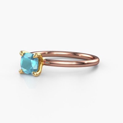 The ring shown above is called the Crystal CUS 1, we call this a solitaire ring because it contains a single gemstone. The engagement ring is made in 14 Carat rose gold and has a cushion blue topaz of 5.5 mm. The cool thing about our configurator is that you can compile your own piece of jewellery, into a completely personalized one. This solitaire ring is crafted in the precious metals rose gold with gold, but of course you are free to pick your own colours. Each piece of jewellery is made with passion and love by one of our master goldsmiths.The solitaire ring is a special type of engagement ring. Its open prong setting allows light to strike the gemstone from various angles. This contemporary engagement ring is a stunning eye-catcher because of the high positioning of the gemstone. In order for you to commemorate your proposal with a unique ring, we carefully adorn this solitaire ring by hand. The love of your life deserves nothing but the best. Because we design and deliver our own rings, we can offer you a engagement ring at a price you won't find anywhere else. A ring is made to order, which helps prevent excess supplies, so we can make you a great price offer. We understand it feels risky, buying your engagement ring online, but we will gladly assist in the designing process, taking your budget into consideration.Our team adds new designs to our online collection daily. Our designers and goldsmiths work together in creating the best design. We strive to offer a diverse collection of jewels. Perhaps you have a specific jewel design in mind. One you came across somewhere. Please contact us for a free consultation. We will make you an offer, based on a fair price/ quality ratio, that will baffle you.To make it easier for you, we offer a 30 day return policy. Check our terms and conditions.