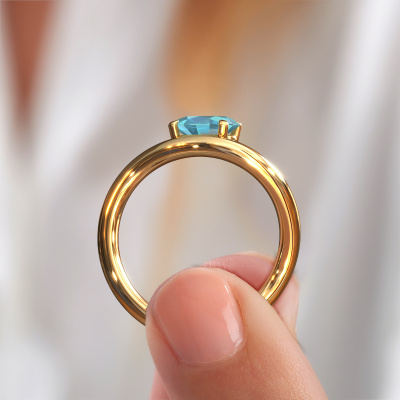 In your eyes, no one else compares to her. She is one in a million, unlike anyone else and pure? These qualities are emphasized perfectly by our design gold solitaire blue topaz ring. This blue topaz is carefully selected by our keen artisan