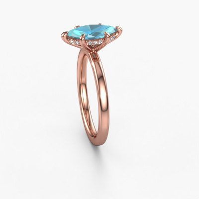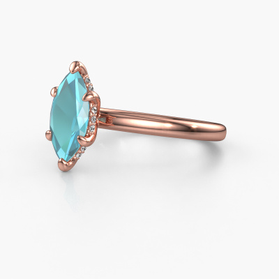 This 14 Carat rose gold ring is called Simone MRQ 2 and is set with 11x5.5 mm blue topaz. What is it that makes your relationship unique? What is it about her that makes you want to bend down on one knee? The unique bond between the two of you is emphasized by an equally unique ring. A one of a kind round solitaire engagement ring made especially for her. That is why this fantasy ring fits her like a glove. Each specific detail of this round rose gold blue topaz set engagement ring is hand-picked, crafted and polished by our expert goldsmith. The result is an exquisite ring, unique and perfectly crafted to perfection. That is what our expert Goldsmiths strive for. This jewel is made just for you by our master goldsmiths in our own studio.Because we design and deliver our own rings, we can offer you a engagement ring at a price you won't find anywhere else. A ring is made to order, which helps prevent excess supplies, so we can make you a great price offer. We understand it feels risky, buying your engagement ring online, but we will gladly assist in the designing process, taking your budget into consideration.Our designers and goldsmiths work together each day, creating new jewels. Perhaps you have found a nice fantasy engagement ring somewhere, which can be used to customize your unique ring. Please feel free to contact us. We will make you an offer, based on a fair price/ quality ratio, which will amaze you.To make it easier for you, we offer a 30 day return policy. Check our terms and conditions.