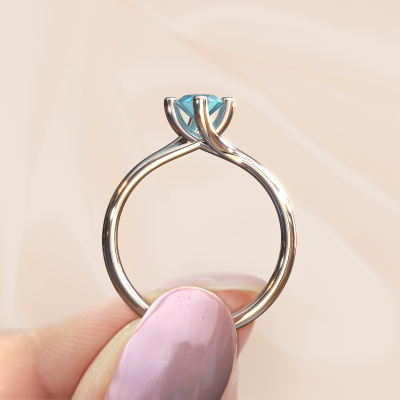 In your eyes, no one else compares to her. She is one in a million, unlike anyone else and pure? These qualities are emphasized perfectly by our modern white gold solitaire blue topaz ring. This blue topaz is carefully selected by our keen artisan goldsmiths. It equals the unique qualities of the love of your life. There is no better way to memorialize your proposal than this symbol of true love. The ring shown above is called the Dewi Oval, we call this a solitaire ring because it contains a single gemstone. The engagement ring is made in 14 Carat white gold and has a oval blue topaz of 7x5 mm. Each piece of jewellery is made with passion and love by one of our master goldsmiths.Are you on a budget? Please feel free to contact us, so we can go discuss your options. We offer our engagement rings at guaranteed best price, because we make them to order. You won't find such a price anywhere else!Do you have a specific ring in mind? One you came across somewhere. Please feel free to tell us your wishes and we will turn your design into a unique engagement ring. You can follow the development of your ring design because we use 3D drawings. This gives you a realistic preview of your design. We will gladly send you a non-binding offer, based on a fair price/ quality ratio. It will amaze you.To make it easier for you, we offer a 30 day return policy. Check our terms and conditions.