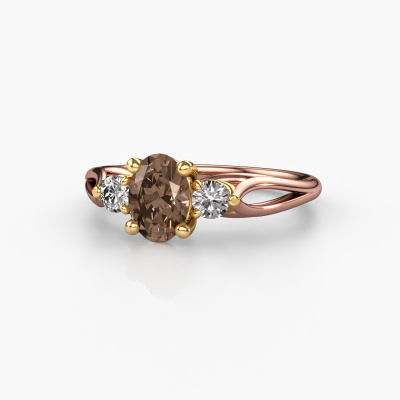 This 14 Carat rose gold ring is called Amie OVL and is set with 0.900 crt brown diamond. What is it that makes your relationship unique? What is it about her that makes you want to bend down on one knee? The unique bond between the two of you is emphasized by an equally unique ring. A one of a kind stylish 3-stone engagement ring made especially for her. That is why this fantasy ring fits her like a glove. Each specific detail of this stylish rose gold brown diamond set engagement ring is hand-picked, crafted and polished by our expert goldsmith. The result is an exquisite ring, unique and perfectly crafted to perfection. That is what our expert Goldsmiths strive for. This jewel is made to shine bright around your finger. Each jewel is hand made with love by our goldsmiths.By using our modern techniques, we can design and customize the finest quality jewels with the utmost care for you. Our engagement rings are always priced 30 percent lower than other jewellers. We make engagement rings to order so we don't have to maintain a large stock. If you have a certain budget, we are more than happy to advice you accordingly.Do you have a specific ring in mind? One you came across somewhere. Please feel free to tell us your wishes and we will turn your design into a unique engagement ring. You can follow the development of your ring design because we use 3D drawings. This gives you a realistic preview of your design. We will gladly send you a non-binding offer, based on a fair price/ quality ratio. It will amaze you.To make it easier for you, we offer a 30 day return policy. Check our terms and conditions.