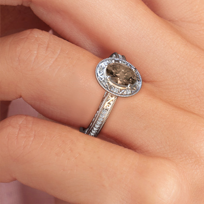 This platinum ring is called Alice OVL and is set with 0.904 crt brown diamond. What is it that makes your relationship unique? What is it about her that makes you want to bend down on one knee? The unique bond between the two of you is emphasized by an equally unique ring. A one of a kind filigree halo engagement ring made especially for her. That is why this vintage ring fits her like a glove. Each specific detail of this filigree platinum brown diamond set engagement ring is hand-picked, crafted and polished by our expert goldsmith. The result is an exquisite ring, unique and perfectly crafted to perfection. That is what our expert Goldsmiths strive for. This jewel is made with passion and love by one of our master goldsmiths.By using our modern techniques, we can design and customize the finest quality jewels with the utmost care for you. Our engagement rings are always priced 30 percent lower than other jewellers. We make engagement rings to order so we don't have to maintain a large stock. If you have a certain budget, we are more than happy to advice you accordingly.Our team adds new designs to our online collection daily. Our designers and goldsmiths work together in creating the best design. We strive to offer a diverse collection of jewels. Perhaps you have a specific jewel design in mind. One you came across somewhere. Please contact us for a free consultation. We will make you an offer, based on a fair price/ quality ratio, that will baffle you.To make it easier for you, we offer a 30 day return policy. Check our terms and conditions.