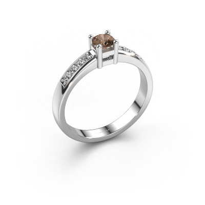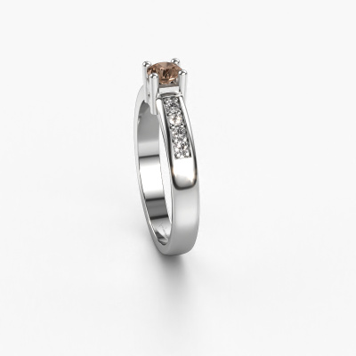 The ring shown above is called the Eline 2. We call this type of ring a pavé solitaire ring because it has one centre gemstone and a band that is also pave set with gemstones. The platinum engagement ring is set with a round 0.20 crt brown diamond centre stone and the band is pave set with diamond gemstones. Each jewel is unique in every way! Simply customize to your liking,This modern platinum pavé solitaire engagement ring has an exquisite round brown diamond centre stone. To further accentuate the centre stone, the band is fully set with more diamonds. Its open prong setting allows light to strike the brown diamond from various angles and this adds sparkle to your brown diamond ring. The photo shown above depicts the goldsmith's carefully handcrafted details of the ring. The high positioning of the centre stone is truly eye-catching. The perfect engagement ring for the crown jewel of your life! Because we design and deliver our own rings, we can offer you a engagement ring at a price you won't find anywhere else. A ring is made to order, which helps prevent excess supplies, so we can make you a great price offer. We understand it feels risky, buying your engagement ring online, but we will gladly assist in the designing process, taking your budget into consideration.Our team adds new designs to our online collection daily. Our designers and goldsmiths work together in creating the best design. We strive to offer a diverse collection of jewels. Perhaps you have a specific jewel design in mind. One you came across somewhere. Please contact us for a free consultation. We will make you an offer, based on a fair price/ quality ratio, that will baffle you.To make it easier for you, we offer a 30 day return policy. Check our terms and conditions.