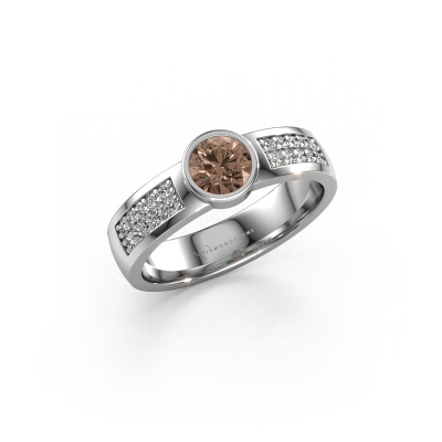 The ring shown above is called the Ise 3. We call this type of ring a pavé solitaire ring because it has one centre gemstone and a band that is also pave set with gemstones. The platinum engagement ring is set with a round 0.40 crt brown diamond centre stone and the band is pave set with diamond gemstones. Each jewel is made just for you by our master goldsmiths in our own studio.This modern platinum pavé solitaire engagement ring has an exquisite round brown diamond centre stone. To further accentuate the centre stone, the band is fully set with more diamonds. Its open prong setting allows light to strike the brown diamond from various angles and this adds sparkle to your brown diamond ring. The photo shown above depicts the goldsmith's carefully handcrafted details of the ring. The high positioning of the centre stone is truly eye-catching. The perfect engagement ring for the crown jewel of your life! Because we design and deliver our own rings, we can offer you a engagement ring at a price you won't find anywhere else. A ring is made to order, which helps prevent excess supplies, so we can make you a great price offer. We understand it feels risky, buying your engagement ring online, but we will gladly assist in the designing process, taking your budget into consideration.Our team adds new designs to our online collection daily. Our designers and goldsmiths work together in creating the best design. We strive to offer a diverse collection of jewels. Perhaps you have a specific jewel design in mind. One you came across somewhere. Please contact us for a free consultation. We will make you an offer, based on a fair price/ quality ratio, that will baffle you.To make it easier for you, we offer a 30 day return policy. Check our terms and conditions.