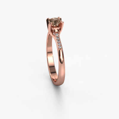 The ring shown above is called the Isa 2. We call this type of ring a pavé solitaire ring because it has one centre gemstone and a band that is also pave set with gemstones. This engagement ring is made in 14 Carat rose gold set with a 0.30 crt round brown diamond, and pave set diamonds at the sides. Each piece of jewellery is created to add sparkle to your finger, each jewel is lovingly made by hand by our goldsmiths.This classic rose gold pavé solitaire engagement ring has an exquisite round brown diamond centre stone. To further accentuate the centre stone, the band is set full with more diamonds. Its open prong setting allows light to strike the brown diamond from various angles and this adds sparkle to your brown diamond ring. The photo shown above depicts the goldsmith's carefully handcrafted details of the ring. The high positioning of the centre stone is truly eye-catching. The perfect engagement ring for the crown jewel of your life!After receiving your order, our goldsmiths will passionately start the creative process of making your engagement ring in our own studio. Because we don't have a big stockpile, these costs will not be passed on to you. Our pricing is proof of that! We offer top quality jewels at lowest price, guaranteed.Different styles of new rings are made daily by our team. Perhaps you have found a pavé solitaire engagement ring somewhere. One you would like to give to your loved one. Please feel free to share your thoughts and design with our jewel designers. We would love to turn your design into a classic engagement ring. You can follow the development of your ring design because we use very detailed 3D drawings. On top of that, you can order a dummy of the design. A dummy is a plastic ring, which can be shaped according your ring design. You can try it on and check if the engagement ring is up to standard. We will gladly send you a non-binding offer, based on a fair price/ quality ratio. The offer will baffle you, considering the quality of the ring and gemstones.To make it easier for you, we offer a 30 day return policy. Check our terms and conditions.