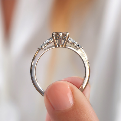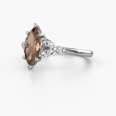 The ring shown above is called the Megan MRQ. We call this type of ring a pavé solitaire ring because it has one centre gemstone and a band that is also pave set with gemstones. This engagement ring is made in 14 Carat white gold set with a 1.25 crt marquise brown diamond, and pave set lab-grown diamonds at the sides. Each piece of jewellery is made with passion and love by one of our master goldsmiths.This fantasy white gold pavé solitaire engagement ring has an exquisite marquise brown diamond centre stone. To further accentuate the centre stone, the band is set full with more lab-grown diamonds. Its open prong setting allows light to strike the brown diamond from various angles and this adds sparkle to your brown diamond ring. The photo shown above depicts the goldsmith's carefully handcrafted details of the ring. The high positioning of the centre stone is truly eye-catching. The perfect engagement ring for the crown jewel of your life![bestp1v_long]Have you found a specific engagement ring somewhere which you would like to give to your loved one? Please feel free to express your wishes to our jewel designers because we would be honoured to turn your design into a fantasy engagement ring. You can follow the development of your ring design because we use 3D drawings. This gives you a realistic preview of how your design will look. You can also preorder a dummy. A dummy is a plastic ring, which can be shaped according your ring design. You can try it on and check if its width and size are suitable for you. We will gladly send you a non-binding offer, based on a fair price/ quality ratio. It will amaze you, considering the quality of the ring and gemstones.To make it easier for you, we offer a 30 day return policy. Check our terms and conditions.
