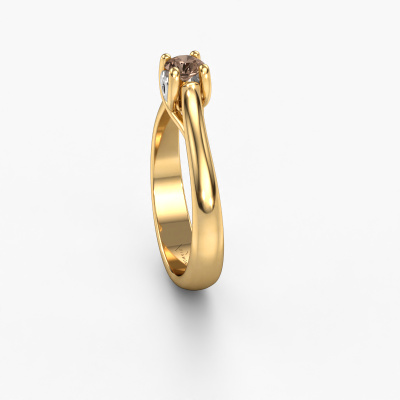 The ring shown above is called the Nisa, we call this a solitaire ring because it contains a single gemstone. The engagement ring is made in 14 Carat gold and has a round brown diamond of 0.30 crt. The cool thing about our configurator is that you can compile your own piece of jewellery, into a completely personalized one. This solitaire ring is crafted in the precious metals gold with gold, but of course you are free to pick your own colours. Each piece of jewellery is made by a team of passionate goldsmiths and jewel designers. This will make your crown jewel truly eye-catching.The solitaire ring is a special type of engagement ring. Its open prong setting allows light to strike the gemstone from various angles. This unique engagement ring is a stunning eye-catcher because of the high positioning of the gemstone. In order for you to commemorate your proposal with a unique ring, we carefully adorn this solitaire ring by hand. The love of your life deserves nothing but the best. Are you on a budget? Please feel free to contact us, so we can go discuss your options. We offer our engagement rings at guaranteed best price, because we make them to order. You won't find such a price anywhere else!Our designers and goldsmiths work together each day, creating new jewels. Perhaps you have found a nice unique engagement ring somewhere, which can be used to customize your unique ring. Please feel free to contact us. We will make you an offer, based on a fair price/ quality ratio, which will amaze you.To make it easier for you, we offer a 30 day return policy. Check our terms and conditions.