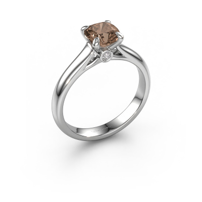 The ring shown above is called the Valorie cus 1, we call this a solitaire ring because it contains a single gemstone. The engagement ring is made in platinum and has a cushion brown diamond of 1.30 crt. The cool thing about our configurator is that you can compile your own piece of jewellery, into a completely personalized one. This solitaire ring is crafted in the precious metals platinum with platinum, but of course you are free to pick your own colours. Each piece of jewellery is made to shine bright around your finger. Each jewel is hand made with love by our goldsmiths.The solitaire ring is a special type of engagement ring. Its open prong setting allows light to strike the gemstone from various angles. This classic engagement ring is a stunning eye-catcher because of the high positioning of the gemstone. In order for you to commemorate your proposal with a unique ring, we carefully adorn this solitaire ring by hand. The love of your life deserves nothing but the best. Are you on a budget? Please feel free to contact us, so we can go discuss your options. We offer our engagement rings at guaranteed best price, because we make them to order. You won't find such a price anywhere else!Have you found a specific engagement ring somewhere which you would like to give to your loved one? Please feel free to express your wishes to our jewel designers because we would be honoured to turn your design into a classic engagement ring. You can follow the development of your ring design because we use 3D drawings. This gives you a realistic preview of how your design will look. You can also preorder a dummy. A dummy is a plastic ring, which can be shaped according your ring design. You can try it on and check if its width and size are suitable for you. We will gladly send you a non-binding offer, based on a fair price/ quality ratio. It will amaze you, considering the quality of the ring and gemstones.To make it easier for you, we offer a 30 day return policy. Check our terms and conditions.