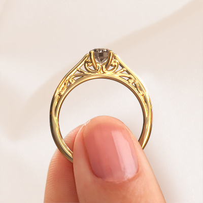 This 14 Carat gold ring is called Shannon rnd and is set with brown diamond. How would you describe the style of the love of your life? Does she have a unique sense of style? This stunning ajour gold engagement ring can be custom-made to your own or her liking. Our brown diamonds gemstones have been carefully selected because we believe your fantasy engagement ring must be adorned with nothing but the most beautiful gemstone. Don't you agree? This jewel is made with passion and love by one of our master goldsmiths.By using a combination of the latest modern techniques, combined with ancient crafting, we can make all our engagement rings in our own studio. Each jewel is made to order. This is advantageous because we can offer you a price you won't find anywhere else.Do you have a specific ring in mind? One you came across somewhere. Please feel free to tell us your wishes and we will turn your design into a unique engagement ring. You can follow the development of your ring design because we use 3D drawings. This gives you a realistic preview of your design. We will gladly send you a non-binding offer, based on a fair price/ quality ratio. It will amaze you.To make it easier for you, we offer a 30 day return policy. Check our terms and conditions.