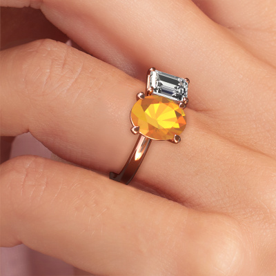 This 14 Carat rose gold ring is called Toi et Moi OVL-EME and is set with 9x7 mm citrin. What is it that makes your relationship unique? What is it about her that makes you want to bend down on one knee? The unique bond between the two of you is emphasized by an equally unique ring. A one of a kind charming 2 stone engagement ring made especially for her. That is why this exclusive ring fits her like a glove. Each specific detail of this charming rose gold citrin set engagement ring is hand-picked, crafted and polished by our expert goldsmith. The result is an exquisite ring, unique and perfectly crafted to perfection. That is what our expert Goldsmiths strive for. This jewel is made just for you, with attention to detail and design.After receiving your order, our goldsmiths will start the creative process of making your Toi et Moi OVL-EME engagement ring. We don't keep stock. This is advantageous because these costs will not be passed on to you. Therefore, we can offer jewellery at exceptionally low prices.Our team adds new designs to our online collection daily. Our designers and goldsmiths work together in creating the best design. We strive to offer a diverse collection of jewels. Perhaps you have a specific jewel design in mind. One you came across somewhere. Please contact us for a free consultation. We will make you an offer, based on a fair price/ quality ratio, that will baffle you.To make it easier for you, we offer a 30 day return policy. Check our terms and conditions.