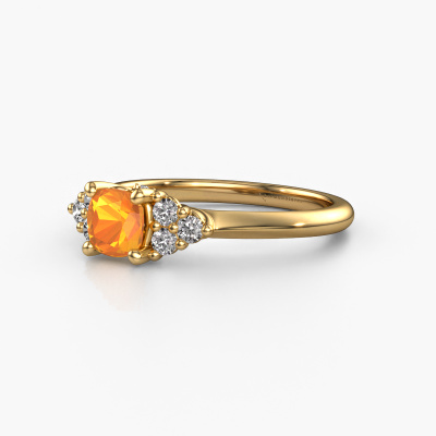 This 14 Carat gold ring is called Felipa CUS and is set with citrin. How would you describe the style of the love of your life? Does she have a unique sense of style? This stunning graceful gold engagement ring can be custom-made to your own or her liking. Our citrin gemstones have been carefully selected because we believe your vintage engagement ring must be adorned with nothing but the most beautiful gemstone. Don't you agree? This jewel is made just for you by our master goldsmiths in our own studio.By using our modern techniques, we can design and customize the finest quality jewels with the utmost care for you. Our engagement rings are always priced 30 percent lower than other jewellers. We make engagement rings to order so we don't have to maintain a large stock. If you have a certain budget, we are more than happy to advice you accordingly.Have you found a specific engagement ring somewhere which you would like to give to your loved one? Please feel free to express your wishes to our jewel designers because we would be honoured to turn your design into a vintage engagement ring. You can follow the development of your ring design because we use 3D drawings. This gives you a realistic preview of how your design will look. You can also preorder a dummy. A dummy is a plastic ring, which can be shaped according your ring design. You can try it on and check if its width and size are suitable for you. We will gladly send you a non-binding offer, based on a fair price/ quality ratio. It will amaze you, considering the quality of the ring and gemstones.To make it easier for you, we offer a 30 day return policy. Check our terms and conditions.