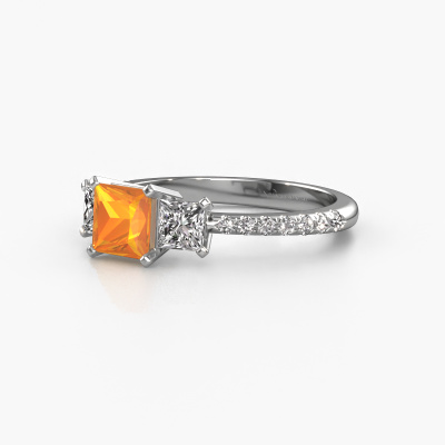 This platinum ring is called Dorla and is set with 5 mm citrin. What is it that makes your relationship unique? What is it about her that makes you want to bend down on one knee? The unique bond between the two of you is emphasized by an equally unique ring. A one of a kind micro pave 3-stone engagement ring made especially for her. That is why this exclusive ring fits her like a glove. Each specific detail of this micro pave platinum citrin set engagement ring is hand-picked, crafted and polished by our expert goldsmith. The result is an exquisite ring, unique and perfectly crafted to perfection. That is what our expert Goldsmiths strive for. This jewel is unique in every way! Simply customize to your liking,After receiving your order, our goldsmiths will passionately start the creative process of making your engagement ring in our own studio. Because we don't have a big stockpile, these costs will not be passed on to you. Our pricing is proof of that! We offer top quality jewels at lowest price, guaranteed.Do you have a specific ring in mind? One you came across somewhere. Please feel free to tell us your wishes and we will turn your design into a unique engagement ring. You can follow the development of your ring design because we use 3D drawings. This gives you a realistic preview of your design. We will gladly send you a non-binding offer, based on a fair price/ quality ratio. It will amaze you.To make it easier for you, we offer a 30 day return policy. Check our terms and conditions.