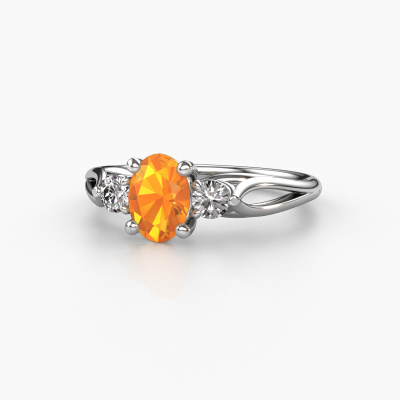 This platinum ring is called Amie OVL and is set with 7x5 mm citrin. What is it that makes your relationship unique? What is it about her that makes you want to bend down on one knee? The unique bond between the two of you is emphasized by an equally unique ring. A one of a kind stylish 3-stone engagement ring made especially for her. That is why this fantasy ring fits her like a glove. Each specific detail of this stylish platinum citrin set engagement ring is hand-picked, crafted and polished by our expert goldsmith. The result is an exquisite ring, unique and perfectly crafted to perfection. That is what our expert Goldsmiths strive for. This jewel is made to shine bright around your finger. Each jewel is hand made with love by our goldsmiths.By using our modern techniques, we can design and customize the finest quality jewels with the utmost care for you. Our engagement rings are always priced 30 percent lower than other jewellers. We make engagement rings to order so we don't have to maintain a large stock. If you have a certain budget, we are more than happy to advice you accordingly.Do you have a specific ring in mind? One you came across somewhere. Please feel free to tell us your wishes and we will turn your design into a unique engagement ring. You can follow the development of your ring design because we use 3D drawings. This gives you a realistic preview of your design. We will gladly send you a non-binding offer, based on a fair price/ quality ratio. It will amaze you.To make it easier for you, we offer a 30 day return policy. Check our terms and conditions.