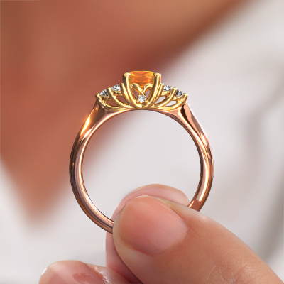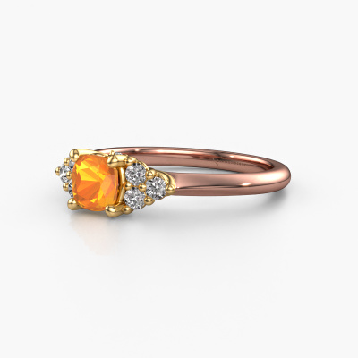 This 14 Carat rose gold ring is called Felipa CUS and is set with citrin. How would you describe the style of the love of your life? Does she have a unique sense of style? This stunning graceful rose gold engagement ring can be custom-made to your own or her liking. Our citrin gemstones have been carefully selected because we believe your vintage engagement ring must be adorned with nothing but the most beautiful gemstone. Don't you agree? This jewel is made just for you by our master goldsmiths in our own studio.By using our modern techniques, we can design and customize the finest quality jewels with the utmost care for you. Our engagement rings are always priced 30 percent lower than other jewellers. We make engagement rings to order so we don't have to maintain a large stock. If you have a certain budget, we are more than happy to advice you accordingly.Have you found a specific engagement ring somewhere which you would like to give to your loved one? Please feel free to express your wishes to our jewel designers because we would be honoured to turn your design into a vintage engagement ring. You can follow the development of your ring design because we use 3D drawings. This gives you a realistic preview of how your design will look. You can also preorder a dummy. A dummy is a plastic ring, which can be shaped according your ring design. You can try it on and check if its width and size are suitable for you. We will gladly send you a non-binding offer, based on a fair price/ quality ratio. It will amaze you, considering the quality of the ring and gemstones.To make it easier for you, we offer a 30 day return policy. Check our terms and conditions.