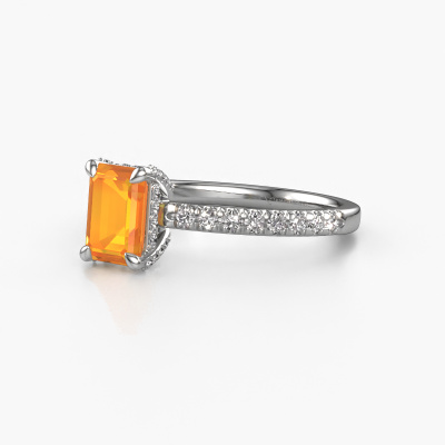 The ring shown above is called the Saskia eme 1, we call this a solitaire ring because it contains a single gemstone. The engagement ring is made in platinum and has a emerald cut citrin of 7x5 mm. The cool thing about our configurator is that you can compile your own piece of jewellery, into a completely personalized one. This solitaire ring is crafted in the precious metals platinum with platinum, but of course you are free to pick your own colours. Each piece of jewellery is made with passion and love by one of our master goldsmiths.The solitaire ring is a special type of engagement ring. Its open prong setting allows light to strike the gemstone from various angles. This exclusive engagement ring is a stunning eye-catcher because of the high positioning of the gemstone. In order for you to commemorate your proposal with a unique ring, we carefully adorn this solitaire ring by hand. The love of your life deserves nothing but the best. After receiving your order, our goldsmiths will passionately start the creative process of making your engagement ring in our own studio. Because we don't have a big stockpile, these costs will not be passed on to you. Our pricing is proof of that! We offer top quality jewels at lowest price, guaranteed.Our team adds new designs to our online collection daily. Our designers and goldsmiths work together in creating the best design. We strive to offer a diverse collection of jewels. Perhaps you have a specific jewel design in mind. One you came across somewhere. Please contact us for a free consultation. We will make you an offer, based on a fair price/ quality ratio, that will baffle you.To make it easier for you, we offer a 30 day return policy. Check our terms and conditions.