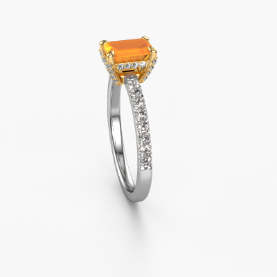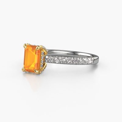 The ring shown above is called the Saskia eme 1, we call this a solitaire ring because it contains a single gemstone. The engagement ring is made in 14 Carat white gold and has a emerald cut citrin of 7x5 mm. The cool thing about our configurator is that you can compile your own piece of jewellery, into a completely personalized one. This solitaire ring is crafted in the precious metals white gold with gold, but of course you are free to pick your own colours. Each piece of jewellery is made with passion and love by one of our master goldsmiths.The solitaire ring is a special type of engagement ring. Its open prong setting allows light to strike the gemstone from various angles. This exclusive engagement ring is a stunning eye-catcher because of the high positioning of the gemstone. In order for you to commemorate your proposal with a unique ring, we carefully adorn this solitaire ring by hand. The love of your life deserves nothing but the best. After receiving your order, our goldsmiths will passionately start the creative process of making your engagement ring in our own studio. Because we don't have a big stockpile, these costs will not be passed on to you. Our pricing is proof of that! We offer top quality jewels at lowest price, guaranteed.Our team adds new designs to our online collection daily. Our designers and goldsmiths work together in creating the best design. We strive to offer a diverse collection of jewels. Perhaps you have a specific jewel design in mind. One you came across somewhere. Please contact us for a free consultation. We will make you an offer, based on a fair price/ quality ratio, that will baffle you.To make it easier for you, we offer a 30 day return policy. Check our terms and conditions.