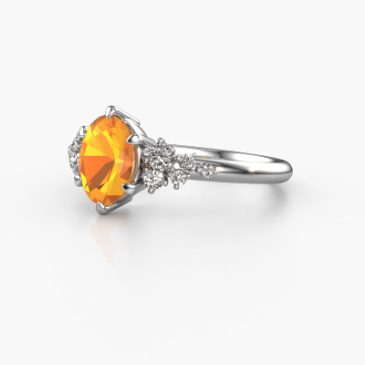 The ring shown above is called the Royce OVL. We call this type of ring a pavé solitaire ring because it has one centre gemstone and a band that is also pave set with gemstones. This engagement ring is made in platinum set with a 8x6 mm oval citrin, and pave set lab-grown diamonds at the sides. Each piece of jewellery is made with passion and love by one of our master goldsmiths.This fantasy platinum pavé solitaire engagement ring has an exquisite oval citrin centre stone. To further accentuate the centre stone, the band is set full with more lab-grown diamonds. Its open prong setting allows light to strike the citrin from various angles and this adds sparkle to your citrin ring. The photo shown above depicts the goldsmith's carefully handcrafted details of the ring. The high positioning of the centre stone is truly eye-catching. The perfect engagement ring for the crown jewel of your life!After receiving your order, our goldsmiths will passionately start the creative process of making your engagement ring in our own studio. Because we don't have a big stockpile, these costs will not be passed on to you. Our pricing is proof of that! We offer top quality jewels at lowest price, guaranteed.Have you found a specific engagement ring somewhere which you would like to give to your loved one? Please feel free to express your wishes to our jewel designers because we would be honoured to turn your design into a fantasy engagement ring. You can follow the development of your ring design because we use 3D drawings. This gives you a realistic preview of how your design will look. You can also preorder a dummy. A dummy is a plastic ring, which can be shaped according your ring design. You can try it on and check if its width and size are suitable for you. We will gladly send you a non-binding offer, based on a fair price/ quality ratio. It will amaze you, considering the quality of the ring and gemstones.To make it easier for you, we offer a 30 day return policy. Check our terms and conditions.