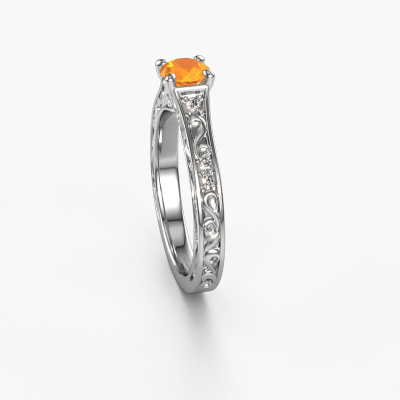 The ring shown above is called the Mallory rnd. We call this type of ring a pavé solitaire ring because it has one centre gemstone and a band that is also pave set with gemstones. This engagement ring is made in platinum set with a 5 mm round citrin, and pave set lab-grown diamonds at the sides. Each piece of jewellery is made just for you by our master goldsmiths in our own studio.This vintage platinum pavé solitaire engagement ring has an exquisite round citrin centre stone. To further accentuate the centre stone, the band is set full with more lab-grown diamonds. Its open prong setting allows light to strike the citrin from various angles and this adds sparkle to your citrin ring. The photo shown above depicts the goldsmith's carefully handcrafted details of the ring. The high positioning of the centre stone is truly eye-catching. The perfect engagement ring for the crown jewel of your life!Because we design and deliver our own rings, we can offer you a engagement ring at a price you won't find anywhere else. A ring is made to order, which helps prevent excess supplies, so we can make you a great price offer. We understand it feels risky, buying your engagement ring online, but we will gladly assist in the designing process, taking your budget into consideration.Different styles of new rings are made daily by our team. Perhaps you have found a pavé solitaire engagement ring somewhere. One you would like to give to your loved one. Please feel free to share your thoughts and design with our jewel designers. We would love to turn your design into a vintage engagement ring. You can follow the development of your ring design because we use very detailed 3D drawings. On top of that, you can order a dummy of the design. A dummy is a plastic ring, which can be shaped according your ring design. You can try it on and check if the engagement ring is up to standard. We will gladly send you a non-binding offer, based on a fair price/ quality ratio. The offer will baffle you, considering the quality of the ring and gemstones.To make it easier for you, we offer a 30 day return policy. Check our terms and conditions.