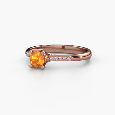 The ring shown above is called the Isa 2. We call this type of ring a pavé solitaire ring because it has one centre gemstone and a band that is also pave set with gemstones. This engagement ring is made in 14 Carat rose gold set with a 4.2 mm round citrin, and pave set diamonds at the sides. Each piece of jewellery is created to add sparkle to your finger, each jewel is lovingly made by hand by our goldsmiths.This classic rose gold pavé solitaire engagement ring has an exquisite round citrin centre stone. To further accentuate the centre stone, the band is set full with more diamonds. Its open prong setting allows light to strike the citrin from various angles and this adds sparkle to your citrin ring. The photo shown above depicts the goldsmith's carefully handcrafted details of the ring. The high positioning of the centre stone is truly eye-catching. The perfect engagement ring for the crown jewel of your life!After receiving your order, our goldsmiths will passionately start the creative process of making your engagement ring in our own studio. Because we don't have a big stockpile, these costs will not be passed on to you. Our pricing is proof of that! We offer top quality jewels at lowest price, guaranteed.Different styles of new rings are made daily by our team. Perhaps you have found a pavé solitaire engagement ring somewhere. One you would like to give to your loved one. Please feel free to share your thoughts and design with our jewel designers. We would love to turn your design into a classic engagement ring. You can follow the development of your ring design because we use very detailed 3D drawings. On top of that, you can order a dummy of the design. A dummy is a plastic ring, which can be shaped according your ring design. You can try it on and check if the engagement ring is up to standard. We will gladly send you a non-binding offer, based on a fair price/ quality ratio. The offer will baffle you, considering the quality of the ring and gemstones.To make it easier for you, we offer a 30 day return policy. Check our terms and conditions.