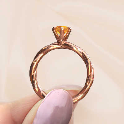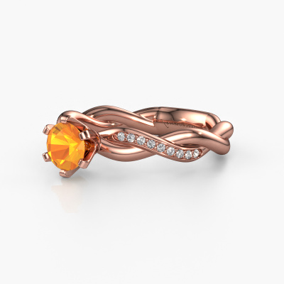 In your eyes, no one else compares to her. She is one in a million, unlike anyone else and pure? These qualities are emphasized perfectly by our fantasy rose gold solitaire citrin ring. This citrin is carefully selected by our keen artisan goldsmiths. It equals the unique qualities of the love of your life. There is no better way to memorialize your proposal than this symbol of true love. The ring shown above is called the Page, we call this a solitaire ring because it contains a single gemstone. The engagement ring is made in 14 Carat rose gold and has a round citrin of 5.4 mm. Each piece of jewellery is made with passion and love by one of our master goldsmiths.Are you on a budget? Please feel free to contact us, so we can go discuss your options. We offer our engagement rings at guaranteed best price, because we make them to order. You won't find such a price anywhere else!Do you have a specific ring in mind? One you came across somewhere. Please feel free to tell us your wishes and we will turn your design into a unique engagement ring. You can follow the development of your ring design because we use 3D drawings. This gives you a realistic preview of your design. We will gladly send you a non-binding offer, based on a fair price/ quality ratio. It will amaze you.To make it easier for you, we offer a 30 day return policy. Check our terms and conditions.
