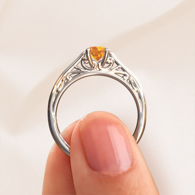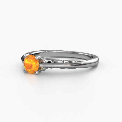 This platinum ring is called Shannon rnd and is set with citrin. How would you describe the style of the love of your life? Does she have a unique sense of style? This stunning ajour platinum engagement ring can be custom-made to your own or her liking. Our citrin gemstones have been carefully selected because we believe your fantasy engagement ring must be adorned with nothing but the most beautiful gemstone. Don't you agree? This jewel is made with passion and love by one of our master goldsmiths.By using a combination of the latest modern techniques, combined with ancient crafting, we can make all our engagement rings in our own studio. Each jewel is made to order. This is advantageous because we can offer you a price you won't find anywhere else.Do you have a specific ring in mind? One you came across somewhere. Please feel free to tell us your wishes and we will turn your design into a unique engagement ring. You can follow the development of your ring design because we use 3D drawings. This gives you a realistic preview of your design. We will gladly send you a non-binding offer, based on a fair price/ quality ratio. It will amaze you.To make it easier for you, we offer a 30 day return policy. Check our terms and conditions.
