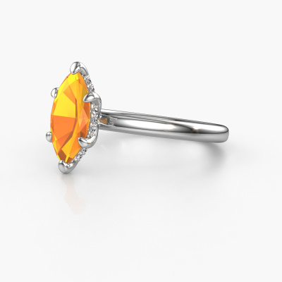 This platinum ring is called Simone MRQ 2 and is set with 11x5.5 mm citrin. What is it that makes your relationship unique? What is it about her that makes you want to bend down on one knee? The unique bond between the two of you is emphasized by an equally unique ring. A one of a kind round solitaire engagement ring made especially for her. That is why this fantasy ring fits her like a glove. Each specific detail of this round platinum citrin set engagement ring is hand-picked, crafted and polished by our expert goldsmith. The result is an exquisite ring, unique and perfectly crafted to perfection. That is what our expert Goldsmiths strive for. This jewel is made just for you by our master goldsmiths in our own studio.Because we design and deliver our own rings, we can offer you a engagement ring at a price you won't find anywhere else. A ring is made to order, which helps prevent excess supplies, so we can make you a great price offer. We understand it feels risky, buying your engagement ring online, but we will gladly assist in the designing process, taking your budget into consideration.Our designers and goldsmiths work together each day, creating new jewels. Perhaps you have found a nice fantasy engagement ring somewhere, which can be used to customize your unique ring. Please feel free to contact us. We will make you an offer, based on a fair price/ quality ratio, which will amaze you.To make it easier for you, we offer a 30 day return policy. Check our terms and conditions.