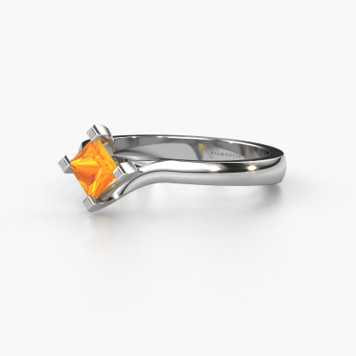 In your eyes, no one else compares to her. She is one in a million, unlike anyone else and pure? These qualities are emphasized perfectly by our modern platinum solitaire citrin ring. This citrin is carefully selected by our keen artisan goldsmiths. It equals the unique qualities of the love of your life. There is no better way to memorialize your proposal than this symbol of true love. The ring shown above is called the Dewi Square, we call this a solitaire ring because it contains a single gemstone. The Engagement ring is made in platinum and has a princess citrin of 4 mm. Each piece of jewellery is made just for you by our master goldsmiths in our own studio.By using a combination of the latest modern techniques, combined with ancient crafting, we can make all our Engagement rings in our own studio. Each jewel is made to order. This is advantageous because we can offer you a price you won't find anywhere else.Our designers and goldsmiths work together each day, creating new jewels. Perhaps you have found a nice modern Engagement ring somewhere, which can be used to customize your unique ring. Please feel free to contact us. We will make you an offer, based on a fair price/ quality ratio, which will amaze you.To make it easier for you, we offer a 30 day return policy. Check our terms and conditions.
