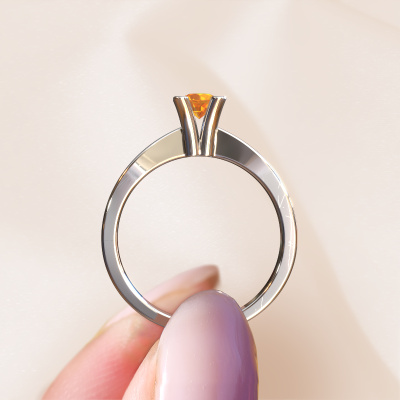 In your eyes, no one else compares to her. She is one in a million, unlike anyone else and pure? These qualities are emphasized perfectly by our traditional platinum solitaire citrin ring. This citrin is carefully selected by our keen artisan goldsmiths. It equals the unique qualities of the love of your life. There is no better way to memorialize your proposal than this symbol of true love. The ring shown above is called the Ichelle 1, we call this a solitaire ring because it contains a single gemstone. The engagement ring is made in platinum and has a round citrin of 4.2 mm. Each piece of jewellery is made with passion and love by one of our master goldsmiths.After receiving your order, our goldsmiths will start the creative process of making your Ichelle 1 engagement ring. We don't keep stock. This is advantageous because these costs will not be passed on to you. Therefore, we can offer jewellery at exceptionally low prices.Have you found a specific engagement ring somewhere which you would like to give to your loved one? Please feel free to express your wishes to our jewel designers because we would be honoured to turn your design into a traditional engagement ring. You can follow the development of your ring design because we use 3D drawings. This gives you a realistic preview of how your design will look. You can also preorder a dummy. A dummy is a plastic ring, which can be shaped according your ring design. You can try it on and check if its width and size are suitable for you. We will gladly send you a non-binding offer, based on a fair price/ quality ratio. It will amaze you, considering the quality of the ring and gemstones.To make it easier for you, we offer a 30 day return policy. Check our terms and conditions.