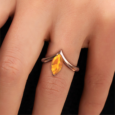 This 14 Carat rose gold ring is called Maddy MRQ and is set with citrin. How would you describe the style of the love of your life? Does she have a unique sense of style? This stunning special rose gold engagement ring can be custom-made to your own or her liking. Our citrin gemstones have been carefully selected because we believe your unique engagement ring must be adorned with nothing but the most beautiful gemstone. Don't you agree? This jewel is made by a team of passionate goldsmiths and jewel designers. This will make your crown jewel truly eye-catching.By using our modern techniques, we can design and customize the finest quality jewels with the utmost care for you. Our engagement rings are always priced 30 percent lower than other jewellers. We make engagement rings to order so we don't have to maintain a large stock. If you have a certain budget, we are more than happy to advice you accordingly.Our team adds new designs to our online collection daily. Our designers and goldsmiths work together in creating the best design. We strive to offer a diverse collection of jewels. Perhaps you have a specific jewel design in mind. One you came across somewhere. Please contact us for a free consultation. We will make you an offer, based on a fair price/ quality ratio, that will baffle you.To make it easier for you, we offer a 30 day return policy. Check our terms and conditions.