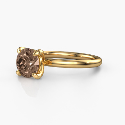 The ring shown above is called the Simone RND 1. We call this a solitaire ring because it contains a single gemstone. The engagement ring is made in 14 Carat gold and has a round brown diamond of 1.50 crt. This extraordinary classic gold solitaire engagement ring is set with a beautiful round brown diamond to add sparkle to your proposal. The open prong setting allows light to strike the gemstone from various angles. Did you know a diamond represents everlasting love and fidelity? This makes it a perfect centrepiece. Our goldsmith carefully positions the gemstone of your choosing high on top of the ring, which makes it stand out. Each piece of jewellery is made just for you, with attention to detail and design.By using a combination of the latest modern techniques, combined with ancient crafting, we can make all our engagement rings in our own studio. Each jewel is made to order. This is advantageous because we can offer you a price you won't find anywhere else.Different styles of new rings are made daily by our team. Perhaps you have found a solitaire engagement ring somewhere. One you would like to give to your loved one. Please feel free to share your thoughts and design with our jewel designers. We would love to turn your design into a classic engagement ring. You can follow the development of your ring design because we use very detailed 3D drawings. On top of that, you can order a dummy of the design. A dummy is a plastic ring, which can be shaped according your ring design. You can try it on and check if the engagement ring is up to standard. We will gladly send you a non-binding offer, based on a fair price/ quality ratio. The offer will baffle you, considering the quality of the ring and gemstones.To make it easier for you, we offer a 30 day return policy. Check our terms and conditions.