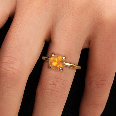 The ring shown above is called the Simone RND 1. We call this a solitaire ring because it contains a single gemstone. The engagement ring is made in 14 Carat gold and has a round citrin of 7.3 mm. This extraordinary classic gold solitaire engagement ring is set with a beautiful round citrin to add sparkle to your proposal. The open prong setting allows light to strike the gemstone from various angles. Did you know a diamond represents everlasting love and fidelity? This makes it a perfect centrepiece. Our goldsmith carefully positions the gemstone of your choosing high on top of the ring, which makes it stand out. Each piece of jewellery is made just for you, with attention to detail and design.By using a combination of the latest modern techniques, combined with ancient crafting, we can make all our engagement rings in our own studio. Each jewel is made to order. This is advantageous because we can offer you a price you won't find anywhere else.Different styles of new rings are made daily by our team. Perhaps you have found a solitaire engagement ring somewhere. One you would like to give to your loved one. Please feel free to share your thoughts and design with our jewel designers. We would love to turn your design into a classic engagement ring. You can follow the development of your ring design because we use very detailed 3D drawings. On top of that, you can order a dummy of the design. A dummy is a plastic ring, which can be shaped according your ring design. You can try it on and check if the engagement ring is up to standard. We will gladly send you a non-binding offer, based on a fair price/ quality ratio. The offer will baffle you, considering the quality of the ring and gemstones.To make it easier for you, we offer a 30 day return policy. Check our terms and conditions.