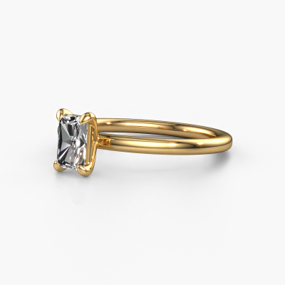 The ring shown above is called the Simone RAD 1. We call this a solitaire ring because it contains a single gemstone. The engagement ring is made in 14 Carat gold and has a radiant diamond of 0.65 crt. This extraordinary classic gold solitaire engagement ring is set with a beautiful radiant diamond to add sparkle to your proposal. The open prong setting allows light to strike the gemstone from various angles. Did you know a diamond represents everlasting love and fidelity? This makes it a perfect centrepiece. Our goldsmith carefully positions the gemstone of your choosing high on top of the ring, which makes it stand out. Each piece of jewellery is made to shine bright around your finger. Each jewel is hand made with love by our goldsmiths.Are you on a budget? Please feel free to contact us, so we can go discuss your options. We offer our engagement rings at guaranteed best price, because we make them to order. You won't find such a price anywhere else!Different styles of new rings are made daily by our team. Perhaps you have found a solitaire engagement ring somewhere. One you would like to give to your loved one. Please feel free to share your thoughts and design with our jewel designers. We would love to turn your design into a classic engagement ring. You can follow the development of your ring design because we use very detailed 3D drawings. On top of that, you can order a dummy of the design. A dummy is a plastic ring, which can be shaped according your ring design. You can try it on and check if the engagement ring is up to standard. We will gladly send you a non-binding offer, based on a fair price/ quality ratio. The offer will baffle you, considering the quality of the ring and gemstones.To make it easier for you, we offer a 30 day return policy. Check our terms and conditions.