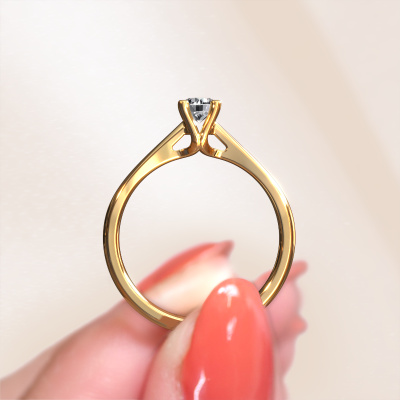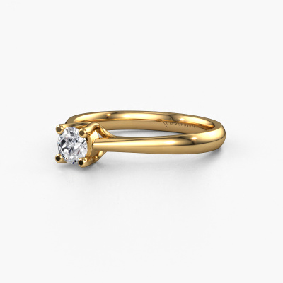 The ring shown above is called the Janna 1. We call this a solitaire ring because it contains a single gemstone. The engagement ring is made in 14 Carat gold and has a round diamond of 0.30 crt. This extraordinary classic gold solitaire engagement ring is set with a beautiful round diamond to add sparkle to your proposal. The open prong setting allows light to strike the gemstone from various angles. Did you know a diamond represents everlasting love and fidelity? This makes it a perfect centrepiece. Our goldsmith carefully positions the gemstone of your choosing high on top of the ring, which makes it stand out. Each piece of jewellery is made by a team of passionate goldsmiths and jewel designers. This will make your crown jewel truly eye-catching.Are you on a budget? Please feel free to contact us, so we can go discuss your options. We offer our engagement rings at guaranteed best price, because we make them to order. You won't find such a price anywhere else!Our designers and goldsmiths work together each day, creating new jewels. Perhaps you have found a nice classic engagement ring somewhere, which can be used to customize your unique ring. Please feel free to contact us. We will make you an offer, based on a fair price/ quality ratio, which will amaze you.To make it easier for you, we offer a 30 day return policy. Check our terms and conditions.