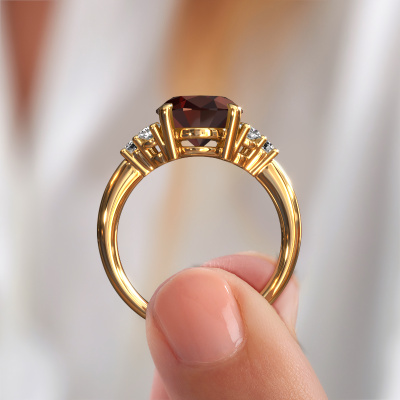This 14 Carat gold ring is called Aleida OVL 1 and is set with 9x7 mm garnet. Are you looking for a classic gold engagement ring which you can customize to your own liking? This classic engagement ring is set with garnet which is carefully selected for this specific ring in order to create the best effect. Our expert goldsmith will create your ring in our own crafting studio, where the garnet will be set with great care. The ring will then be polished till it shines perfectly. Nothing but the best for the love of your life! The great thing about our online tool is, that you can compile your own jewellery into a unique, personalized piece. Each piece of jewellery is created to add sparkle to your finger, each jewel is lovingly made by hand by our goldsmiths.Are you on a budget? Please feel free to contact us, so we can go discuss your options. We offer our engagement rings at guaranteed best price, because we make them to order. You won't find such a price anywhere else!Our team adds new designs to our online collection daily. Our designers and goldsmiths work together in creating the best design. We strive to offer a diverse collection of jewels. Perhaps you have a specific jewel design in mind. One you came across somewhere. Please contact us for a free consultation. We will make you an offer, based on a fair price/ quality ratio, that will baffle you.To make it easier for you, we offer a 30 day return policy. Check our terms and conditions.